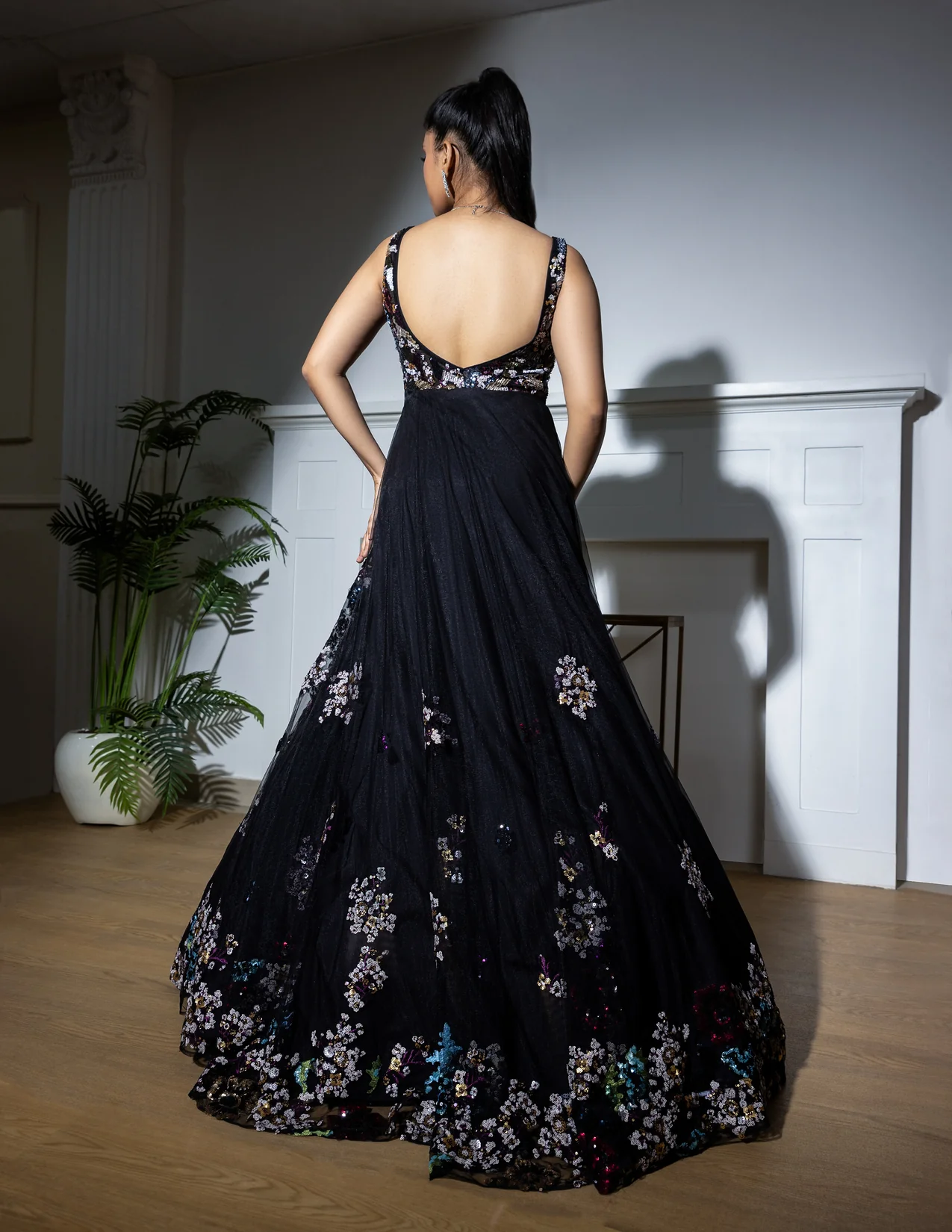 Home / Gowns / Black Net Sequins Embroidered Gown